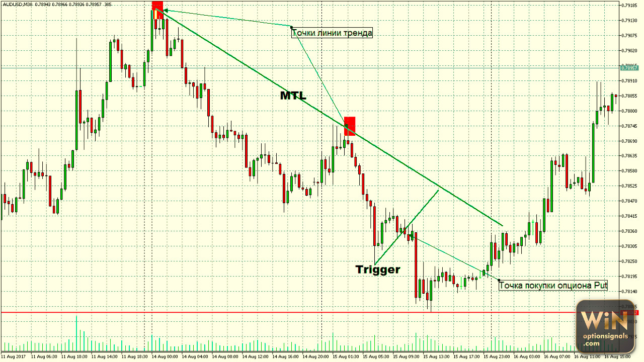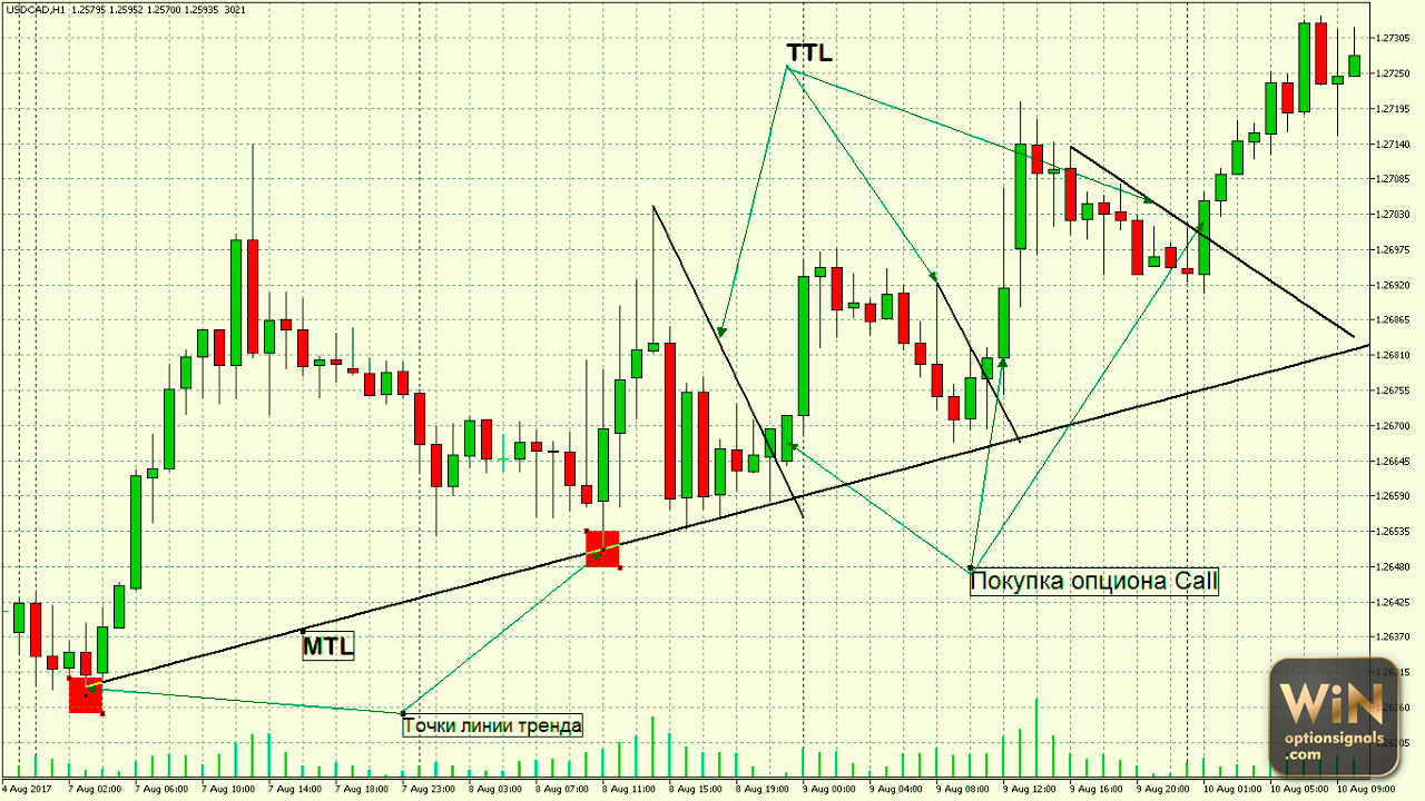 The essence of the system is to enter the market when the price breaks through the correction line in the direction of the main trend. How to determine the points at which you need to buy an option?