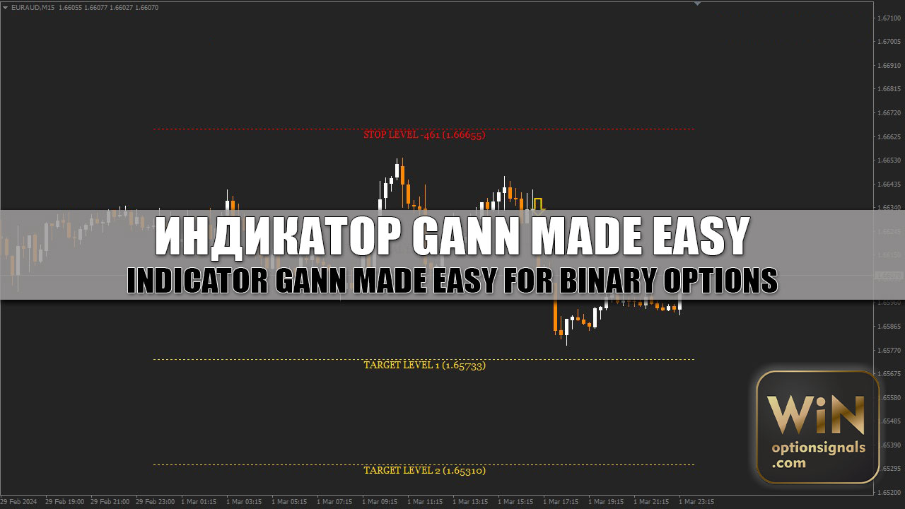 The indicator for binary options Gann Made Easy was created based on the theory of William Gann. It is difficult to understand not only for beginners, but even for experienced traders. Many of its elements are based on planetary aspects (the interaction of planets), natal charts (diagrams of the location of celestial bodies on a specific date) and astrology. Equally challenging are more mundane techniques like the Fan, Square of Nine, and Gann Hexagon, as well as time cycle analysis, which examines repeating price patterns.