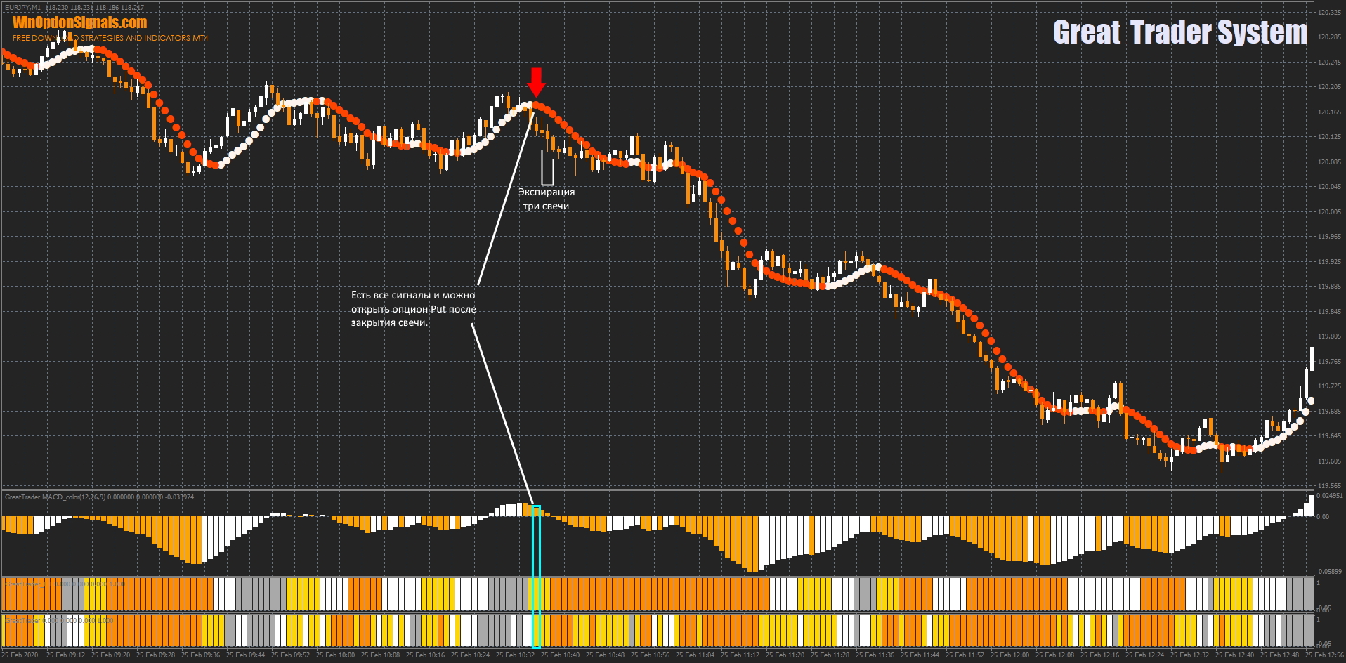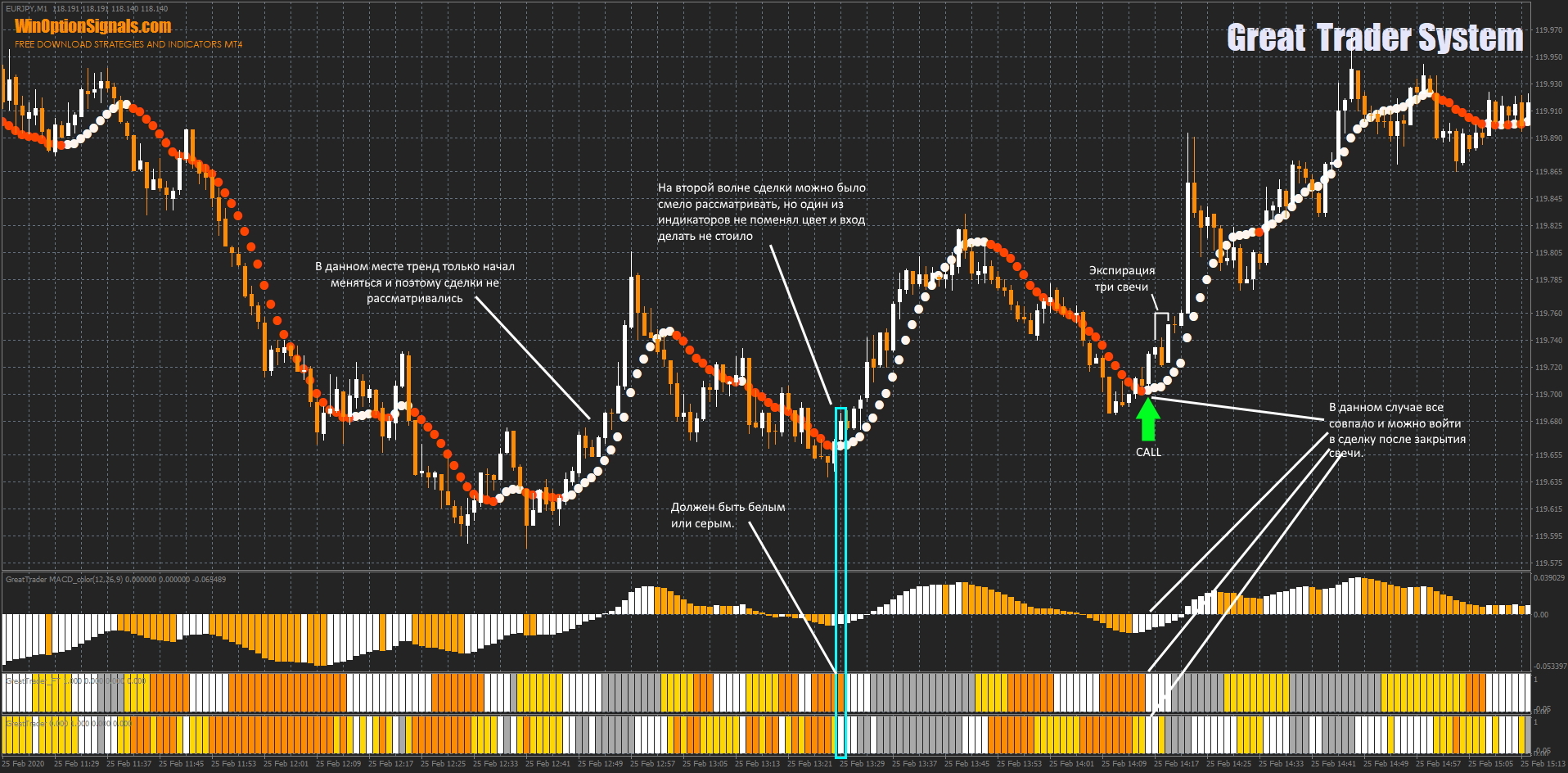 The Great Trader System binary options strategy is a mixture of trend and histogram indicators . Individually, these indicators are not particularly valuable, but if the signals from each indicator coincide with each other, then the result is a workable trading strategy. And despite the fact that there are four indicators in this strategy for binary options, the rules for entering a trade are very simple.