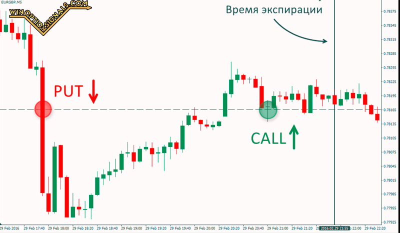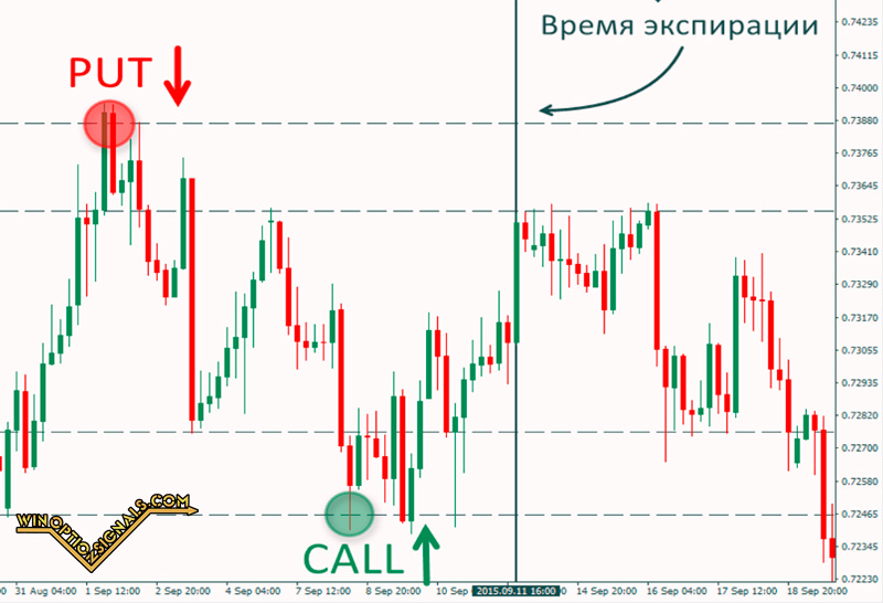 To conclude transactions, find the maximum and minimum for a certain period, opening Put or Call positions at the bottom and top of the channel, respectively. Trading is carried out in a price corridor, this approach is especially effective with minor fluctuations. Most often, both bets turn out to be profitable.