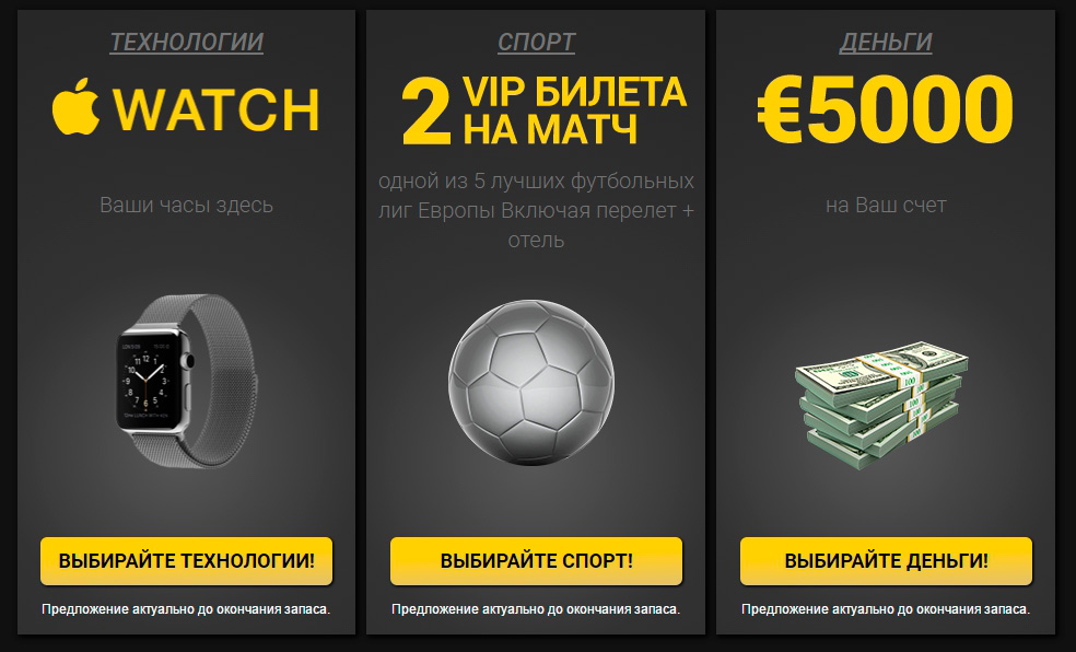 In addition to starting bonuses, binary options brokers often try to warm up their clients with cash or material prizes. Often, to do this, you just need to top up your deposit within a specified period and wait for the draw, but no less often, all you need to receive a prize is a deposit of a larger amount, for which you will receive a guaranteed prize.