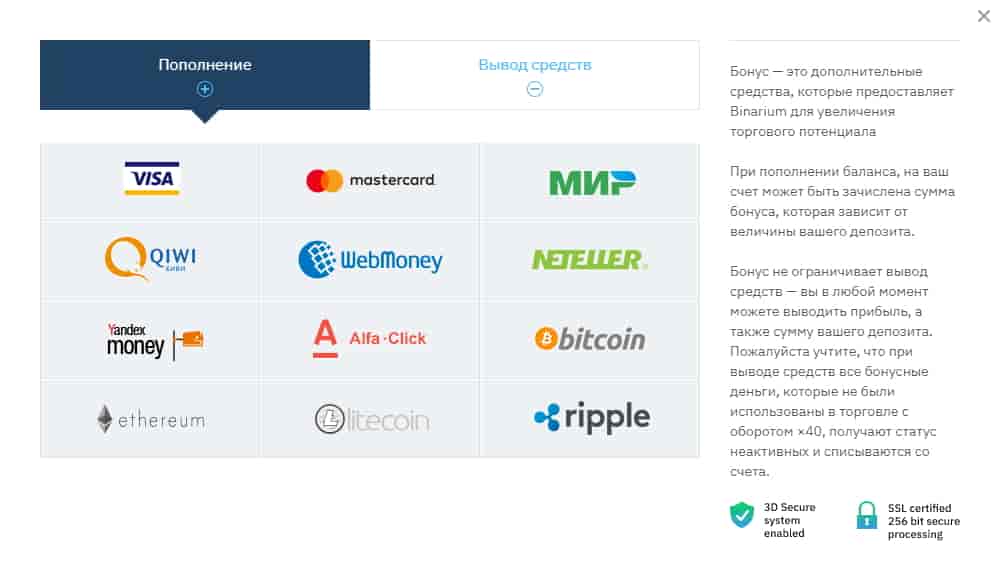When you make your first deposit of $50 or more, an additional 50% is credited in the form of a bonus, which can only be used when making transactions. The deposit usually takes a few seconds. But delays caused by the peculiarities of the selected payment system cannot be ruled out.