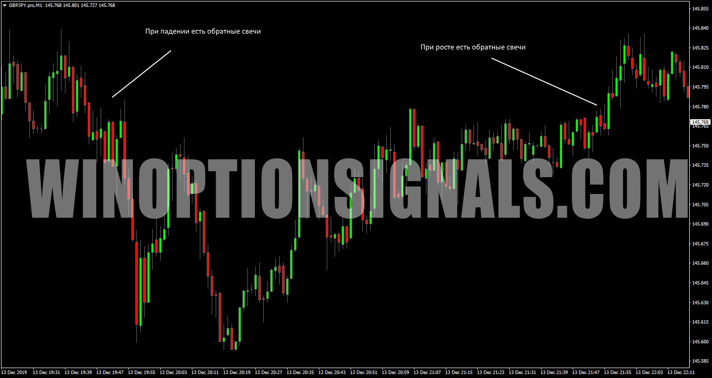 Simply put, during price increases, red candles often appear, and during decreases – green ones. This observation is extremely useful as it allows us to use it to our advantage.