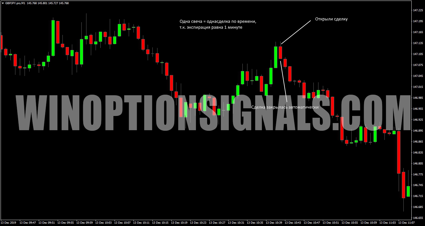 Furthermore, 1-minute expiration allows the use of simple candlestick chart combinations as binary options strategies. You can read more about this in the article "Japanese candlesticks for beginners and how to read them".