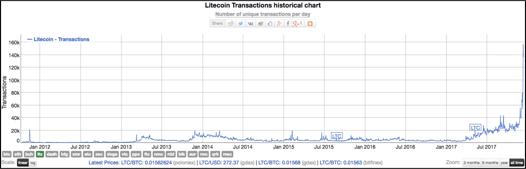 Secondly, there is a huge load on the blockchain. Look at the number of transactions happening on the LTC chain: