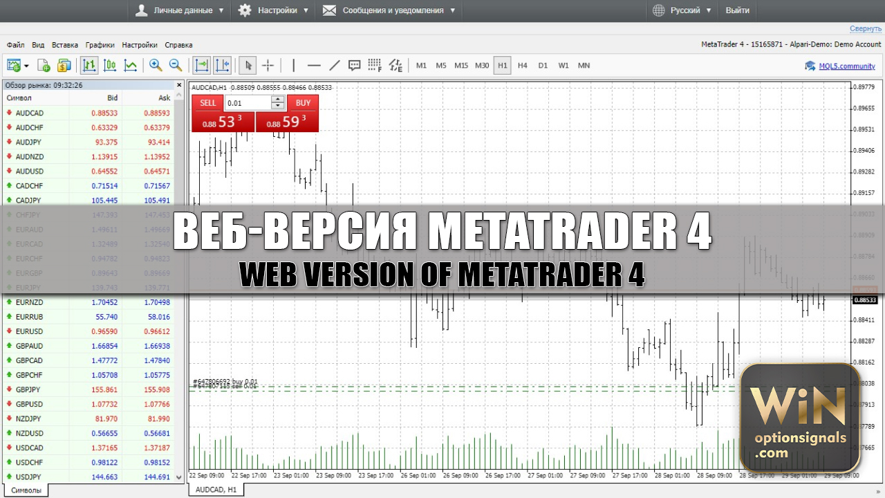 For a long time, the development of online trading platforms for binary options has bypassed financial asset trading programs popular among traders. In particular, the MetaTrader 4 developers refused to release a web version of this application for a long time, but now the MT4 online terminal has become available to traders. However, the interface of the web version of MetaTrader 4 is slightly different from the software one.