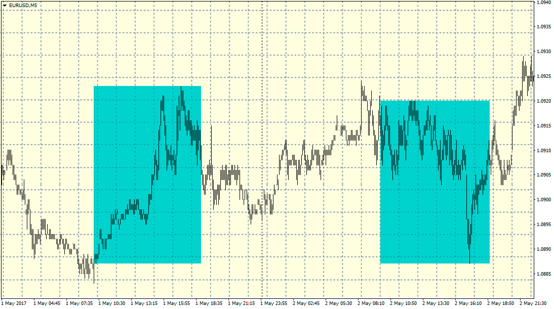 Another important condition for the strategy is the presence of volatility. It is not recommended to carry out trading operations during a lull in the market. The same reason is also the rationale behind the recommendation to use only major currency pairs as trading instruments, since they are more liquid. Most currency pairs perform well during the European session, but some can be traded during the American session.