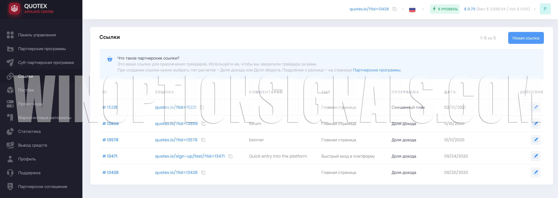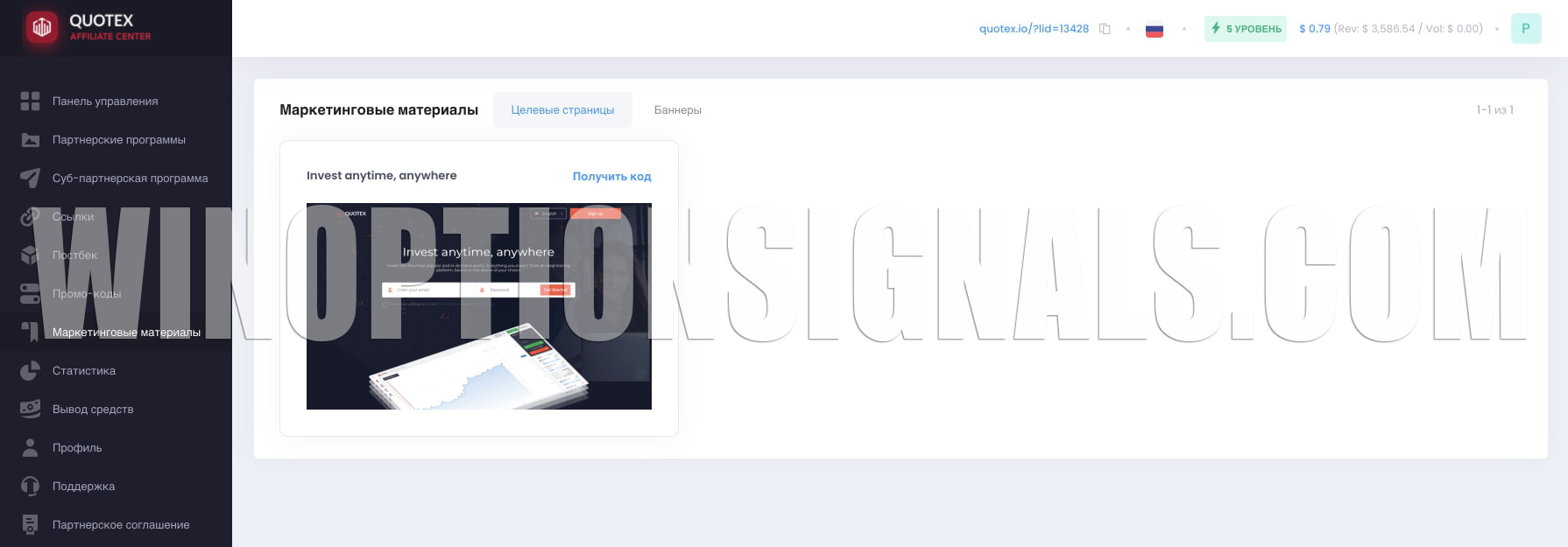 The broker’s affiliate program in question, like other similar affiliate programs of brokers, implies advertising their services or product (in this case we are talking about advertising the Quotex binary options broker platform) and attracting interested clients using a referral link. The amount of income you receive will directly depend on the success of these actions.