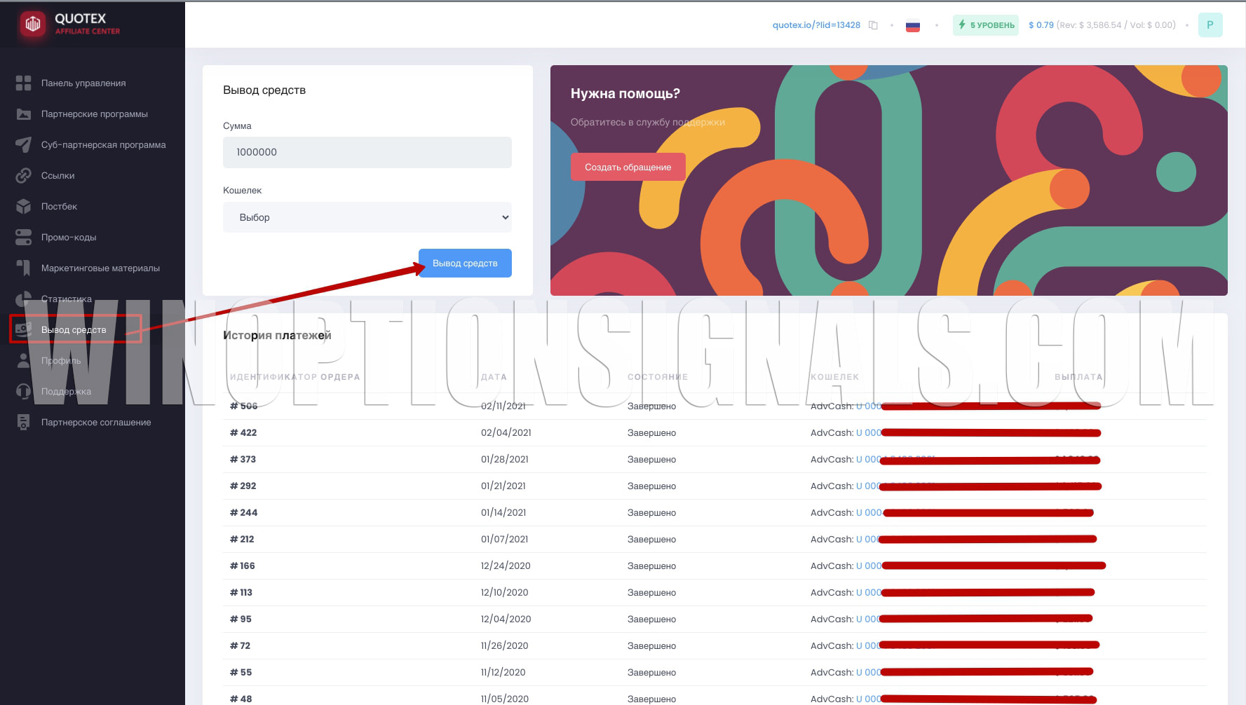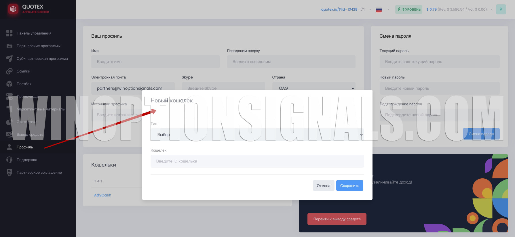 Withdrawal of profits from the Quotex affiliate program