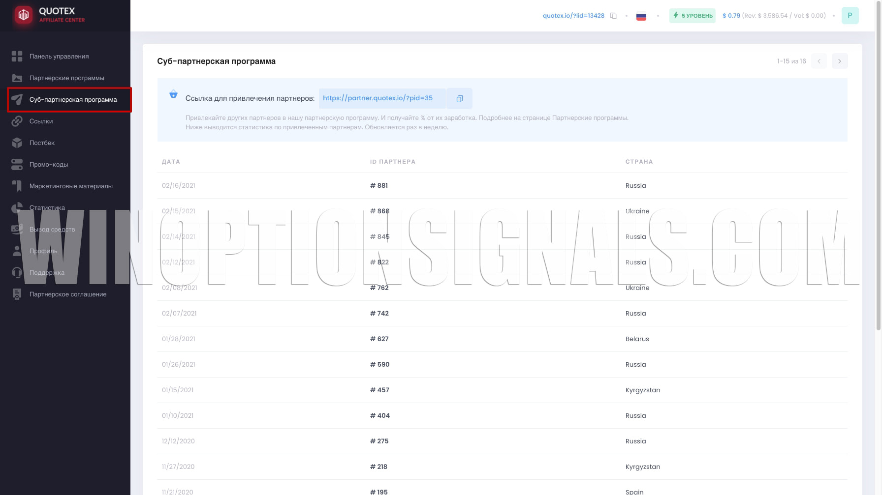 The Quotex affiliate program also provides a referral system by attracting not traders, but sub-partners: