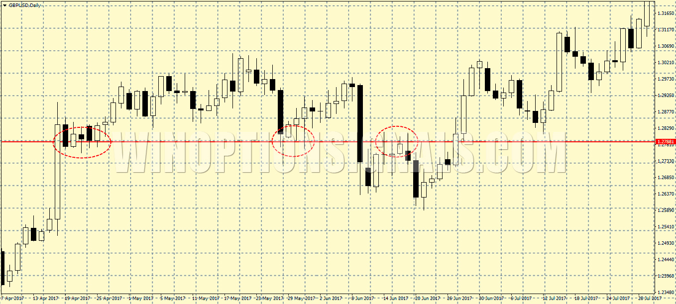 Therefore, in order to find such a level on the asset price chart, you need to see several rebounds from some imaginary line. The most common sign of a rebound is candles that have large candles in the area of extremes. The more such “confirmations” you see, the stronger the level’s meaning.