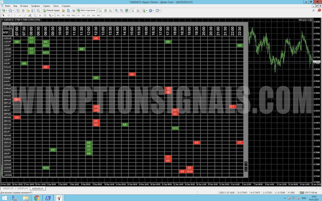 When looking for the perfect tool, you can pay attention to the SSS-Option indicator , which is very close to being called the “Grail” for binary options. This indicator analyzes historical data over very long periods and allows you to track the longest series of candles that close up or down in a row. Maximum profitability (which reaches 100%) can only be achieved by using the Martingale system , as well as long series. It is worth noting that the SSS-Option indicator does not work on “magic” algorithms, but only analyzes the history of any trading asset on three different timeframes:
