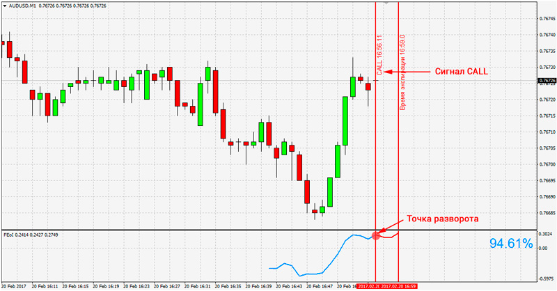 All incoming information is automatically processed, sinusoids with different cycles are drawn, each of them is part of a larger cycle. This method of analysis is unique; it is not yet used in other indicators used for trading binary options.
