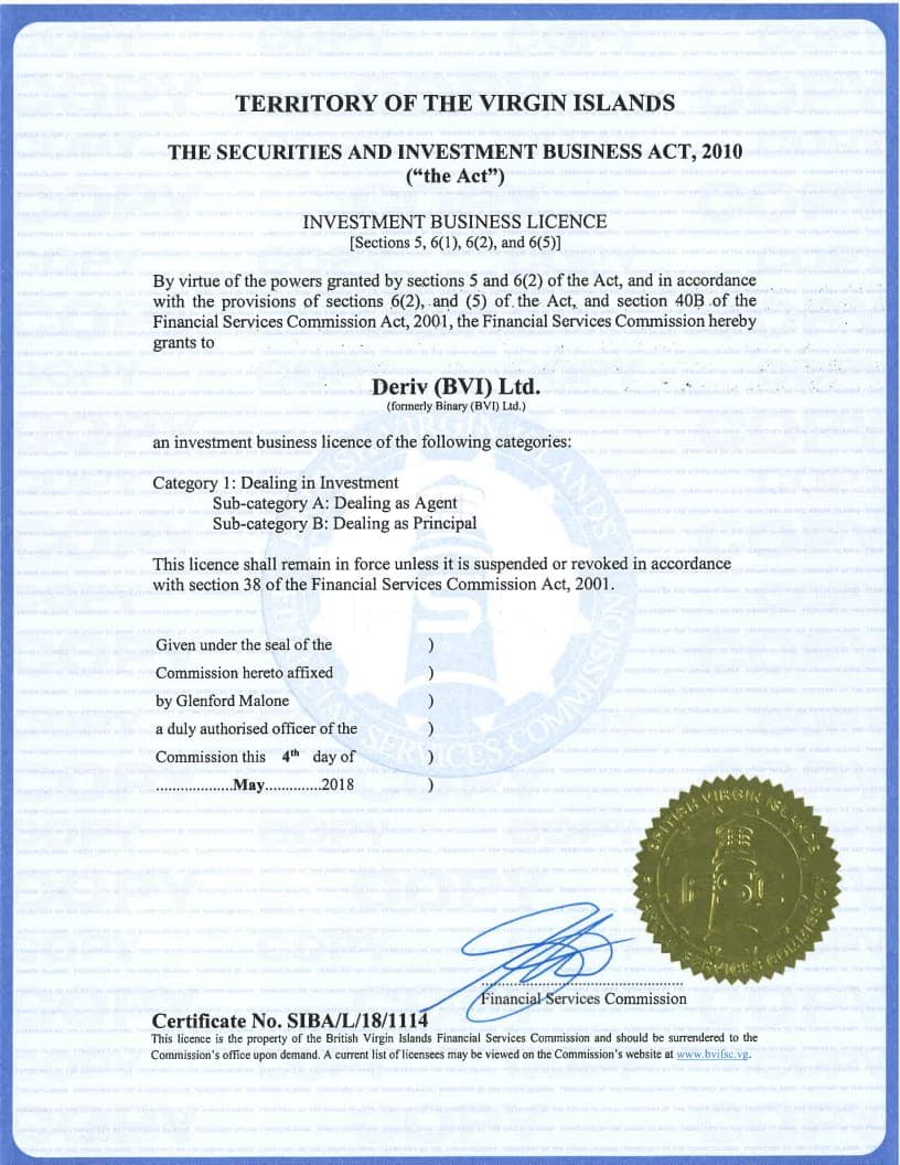 You can familiarize yourself with licenses from different regulators using the example of the Deriv broker , which provides trading in both binary options and the Forex market. The broker has many licenses, thanks to which he can operate in different countries, including Europe and Asia: