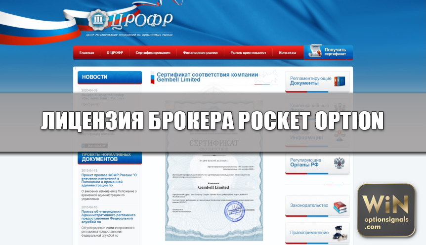 Брокер PocketOption получил лицензию в конце 2017 года. Регулятором в данном случае выступила коммерческая организация ЦРОФР. Каждому лицензированному брокеру выдается специальная лицензия, которая подтверждает регуляцию данной компании:
